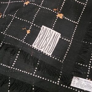 Bill Blass 100% Wool Scarf Black w/ Fall Leaves EUC