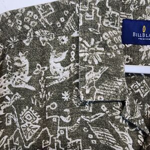 Bill Blass Aztec Hawaiian Shirt Mens XL Green 100% Cotton Button Front Aloha