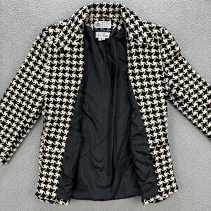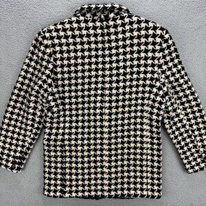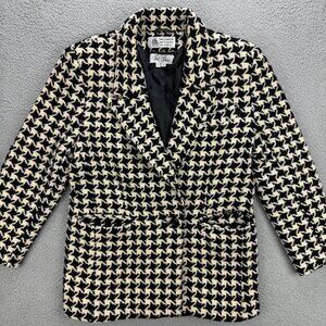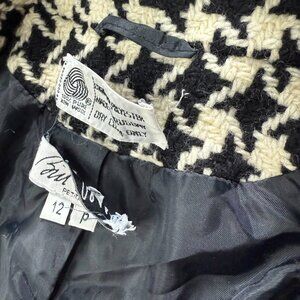 Bill Blass Blazer Women 12 Petite Black White Houndstooth Wool Sport Coat Jacket
