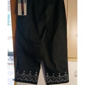 Bill Blass Capri Pants Black Embroidered Size 10 NWT Stretch Side Zip
