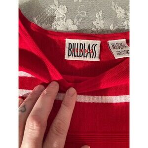 Bill Blass Jeans Vintage 80s Top Red & White Stripe Knit 1980s Retro Size Medium