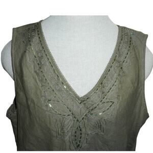 Bill Blass Jeanswear Green Beaded Linen Blend Sleeveless Top Women’s XL