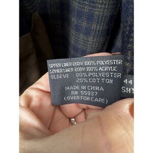 Bill Blass Men’s 44S Brown Trench Coat Removable Zip Out Liner Business Office. This is a classic Bill Blass men’s trench coat, sized 44S (Short). The coat comes in a versatile Brown color, making it an ideal piece for business or office wear. A key feature is the removable zip-out liner, which adds versatility, allowing the coat to be worn comfortably across different seasons. The coat features traditional trench coat styling, and is perfect for a sophisticated, professional aesthetic. Chest 51in and Length 46in. Made in China.