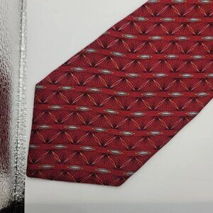 Bill Blass Mens tie 100% Silk Made in Mexico, red geometric stripes, black label