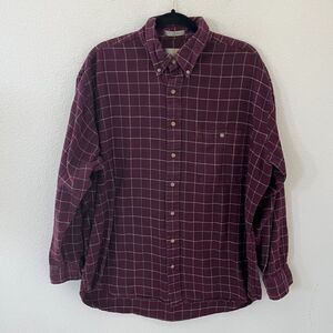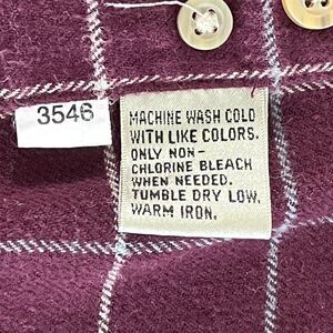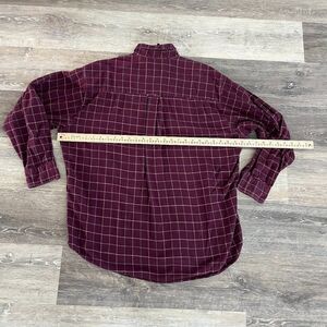 This is a maroon long sleeve shirt in plaid by Bill Blass in excellent condition