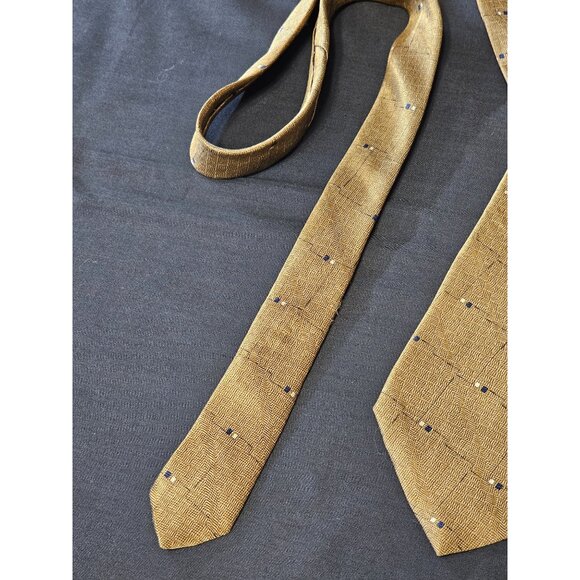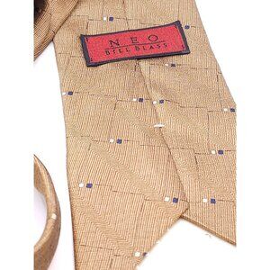 Bill Blass NEO Men's Silk Tie Gold, Tan & Blue Geometric Pattern