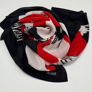 Bill Blass Silk Abstract Print Square Scarf Red White Black