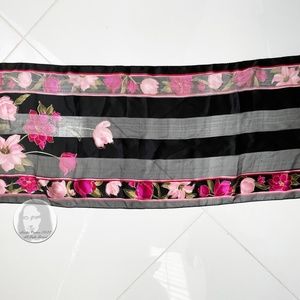 Bill Blass Silk Scarf Shawl Stole Silk Chiffon Graphic Floral Print Vintage 80s