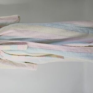 Bill Blass Pastel Striped Cozy Robe with Detached Belt and Pockets.