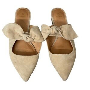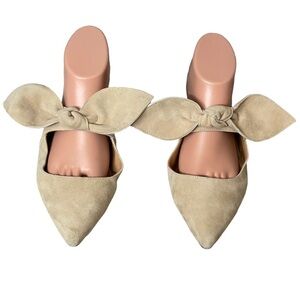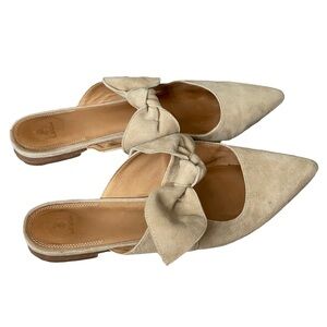 Bill Blass Suede Pointed Knotted Bow Slide Flats Size 9
