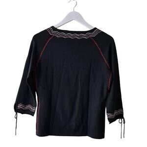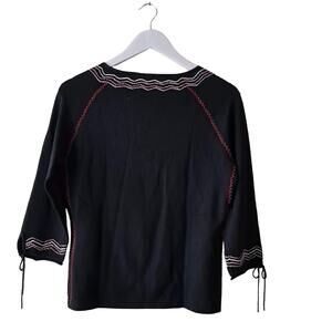 Bill Blass Womens Black with Tan Burgundy & Beige Embroidered Long Sleeve with Keyhole Neckline - Size S