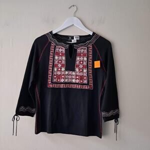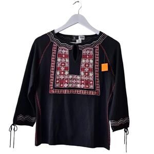 Bill Blass Womens Black Multicolored Embroidered Top w Keyhole Neckline - Size S
