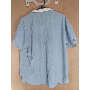 The Bill Blass Women's Denim Button-Up in size XL features an embroidered heart and flower design, perfect for adding a touch of vintage charm to your casual wardrobe. Made from 100% cotton denim in a classic blue color, this collared button-up is machine washable and easy to care for. With a regular size fit and basic style, this top is versatile for all seasons and occasions, making it a timeless addition to any woman's clothing collection. Upgrade your wardrobe with this stylish and unique piece from a trusted brand like Bill Blass.