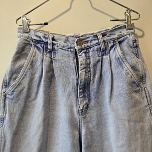 100% cotton. Vintage Bill Blass 80/early 90s style jeans. Pleated waistline. High rise and a straight leg. Some stains and a black mark on the back seat of pants. See photos for condition. Marked a size 10. Vintage sizes runs smaller. Fits more like a high rise 4/6 with an approximate inseam of 29".