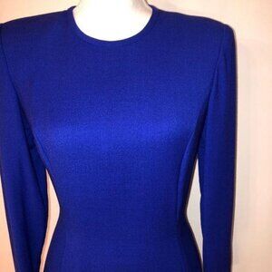 Bill Blass Wool Dress Womens Size 4 Vintage Crepe Lined Back Zip Shoulder Pads
