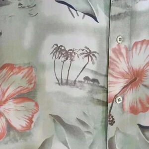Bill Blass XXL 100% Silk Green/pink hibiscus button down
