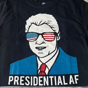 Bill Clinton Black Graphic T-Shirt with Presidential AF Design SZ MediumShow off your style with this black graphic t-shirt featuring a bold presidential design. Perfect for casual outings.