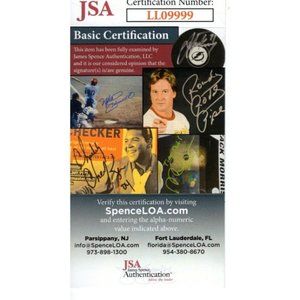 Full Size Black Steel Folding Chair, hand signed in silver paint pen by 2018 WWE Hall of Fame inductee Bill Goldberg. Goldberg inscribed the chair with his catch phrase 'Who's Next!". This sig is a clean, well placed signature that really displays nicely on this collectible, which has been authenticated by James Spence Authentication Services (JSA).