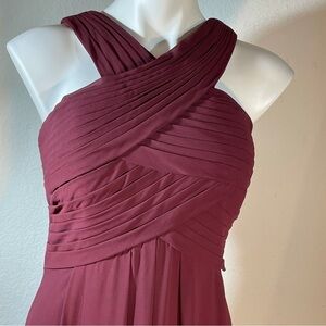 Bill Levkoff 7016 Pleated Bridesmaid Gown 12 Wine Modest long dress maxi