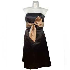 Bill Levkoff Black Strapless Knee Length Dress with Gold Sash Bow