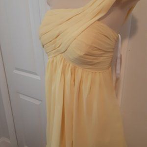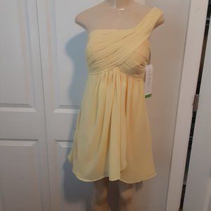 Bill Levkoff Butter or Canary Yellow Chiffon One Shoulder Faux Wrap Short Dress