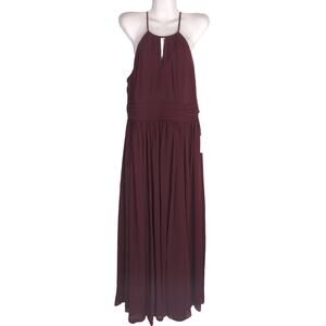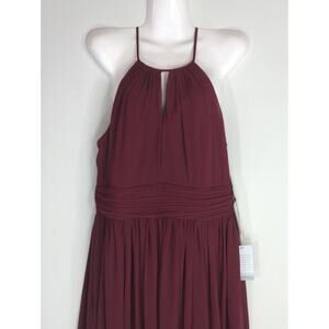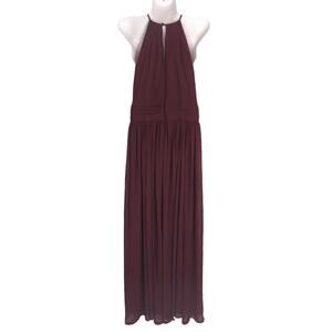 Bill Levkoff Women's Sleeveless Halter Neck Maxi Chiffon Dress Maroon Size 14 NWT