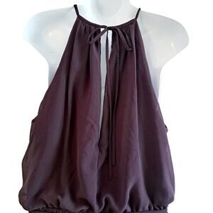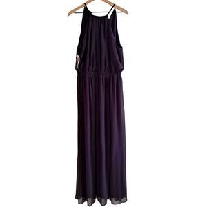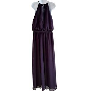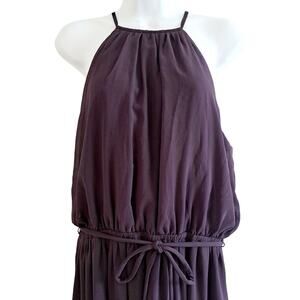 Bill Levkoff halter top chiffon dress. Back tie neckline. Keyhole back. Lined. Elastic tie waist. Side slit. NWT.