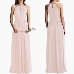 Bill Levkoff #Levkoff Keyhole Neck Chiffon Gown Bridesmaid Maxi Dress Pink Size 12