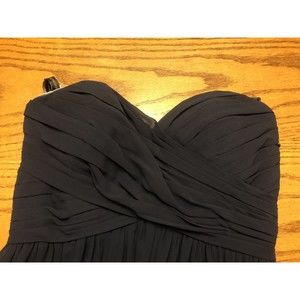 You are purchasing a Bill Levkoff Navy Bridesmaid Dress Long Strapless Size 10 RN# 82955. This item is used and does have wear and tear. I noticed a stain near the bottom of the front. Please see the pictures for condition. I have included measurements for sizing. It runs true to size in my opinion. I had it dry cleaned, but they must have missed the spot on the bottom. This item is coming from a smoke free home. I will ship within one business day of receiving payment.