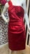 Chic one shoulder design. Luxurious red fabric. Perfect for elegant events.