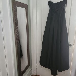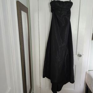 This elegant black strapless evening dress is perfect for any formal occasion. Its sleek design offers a timeless look that is both sophisticated and stylish.