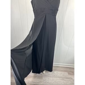 Bill Levkoff Women's Black Maxi Sleeveless Dress Gown in Size 16. Excellent Condition. 2 sheer flaps open when. you walk for the skirt and optional to put your own broach at middle front of waistline shown in last photo or just wear as is. Perfect for any formal event like Black Tie, Wedding, Party, etc. Deep V neckline.
