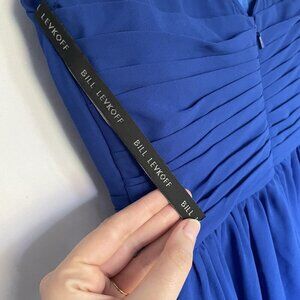 Bill Levkoff size 10 Elegant Blue Sleeveless Chiffon Dress With Ruched Bodice
