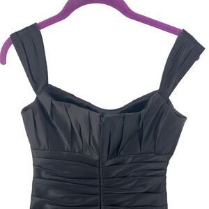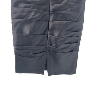 Bill Levkoff Ruched Bodycon Satin Ruffle Pleated Mini Dress Black Size 4 EUC