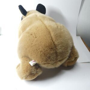 Good shape overall. One split seam on a paw, about half an inch long, in need of repair.