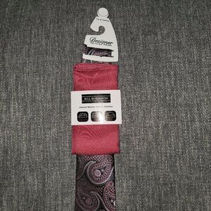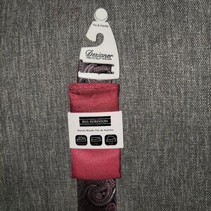 Bill Robinson Men's Red & Black 100% Polyester Hand Made Tie & Hanky Size OS