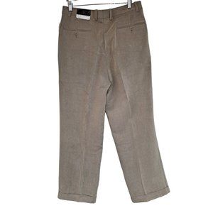 "Bill Robinson men's size 36 pants in a classic, pleated design with cuffs. Minimalist office wear in a solid beige color. Made from a comfortable blend of rayon and polyester."