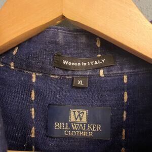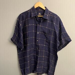 Bill Walker silk/linen blend button down shirt. Navy with tan windowpane pattern. Size XL