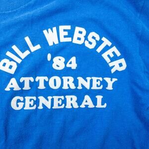 Authentic vintage 1980s campaign tee for Bill Webster’s 1984 run for Missouri Attorney General. Single stitch vintage t-shirt. A rare collectible for vintage lovers and political memorabilia enthusiasts.