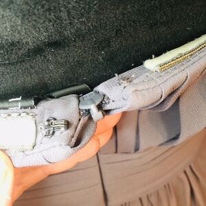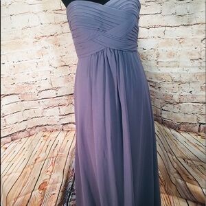 Bill levkoff Prom dress or maid of honor her bridesmaid dress it is gray from the top to the bottom strapless has a rubber grip or along the bus line to try to help keep it up it has three straps for hanging it on the hanger and it is 100% polyester lining is 100% polyester see photos for more details