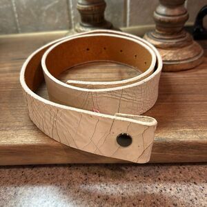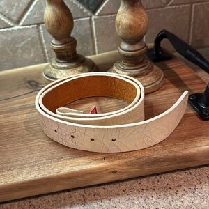 Stylish textured beige leather belt. Perfect for any outfit. - Approx. 39” long without buckle. Paint splatter spot. Not sure if that’s part of design.