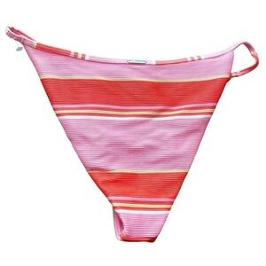 Billa Bong Stripe Mid Bum Coverage Bikinis Bottom Pink Red Women's Size XL NWOT