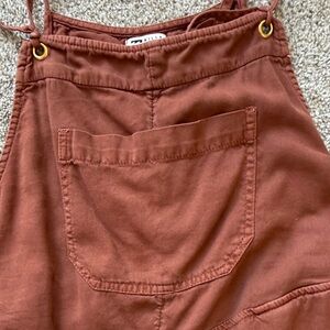 Chic rust romper with a handy front pocket. Adjustable straps for a perfect fit. Size medium, perfect condition