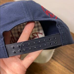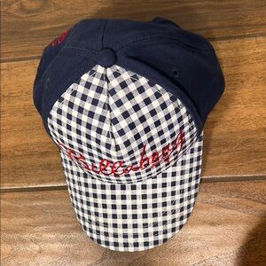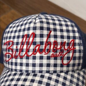 Super cute vintage looking Billabong Aust (Australia) blue and white checkered adjustable baseball cap with red embroidery.