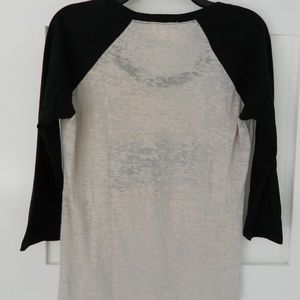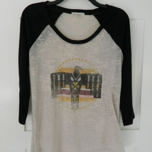 Semi sheer 3/4 sleeve T shirt with Aztec print. 55 % cotton 45% poly Excellent condition!