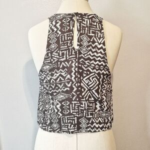 Aztec pattern. Lightweight, flowy crop top. Keyhole back with button closure.