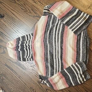 This women's sweater combines coastal comfort with Baja vibes and lightweight warmth. A striped knit with ribbed trim and kanga pocket, its V-neck and relaxed fit layer on effortless beachy style.