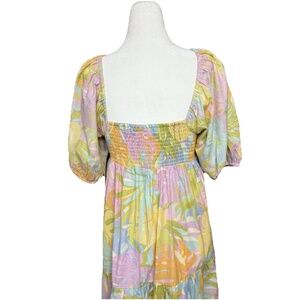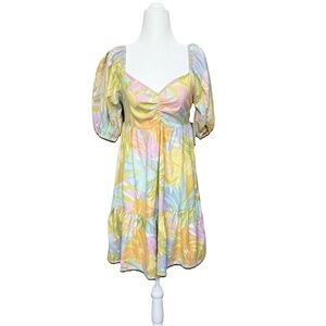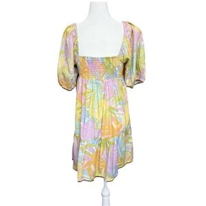 Billabong Be Mine Babydoll Dress Size M Multicolor Puff Sleeve Tropical NWT
