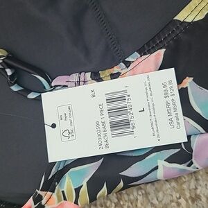 Billabong Beach Babe Black and Pink One Piece Swimsuit Tropical Floral