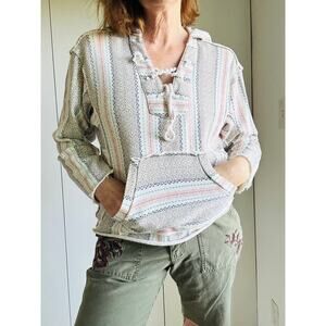 Billabong Beachy Hoodie Pastels Cream Size Medium Surfer Coastal Lace up